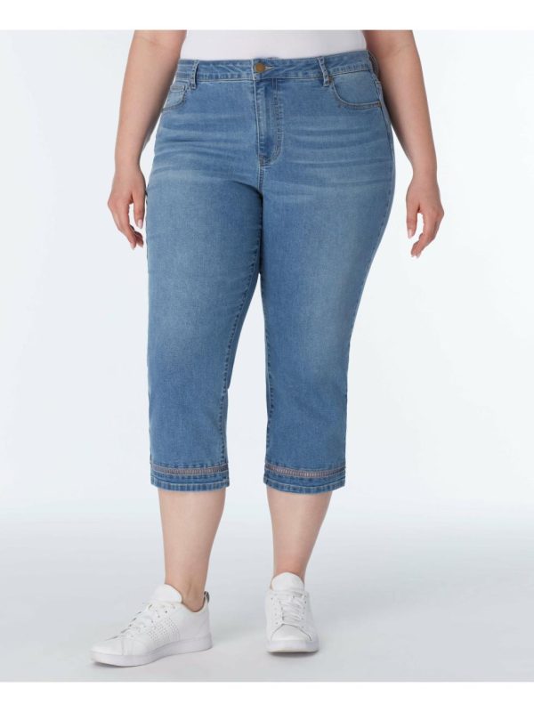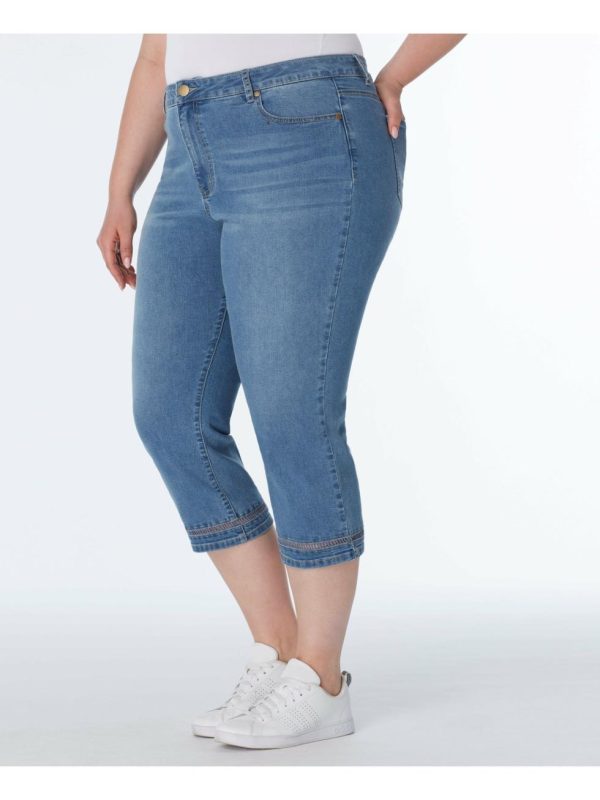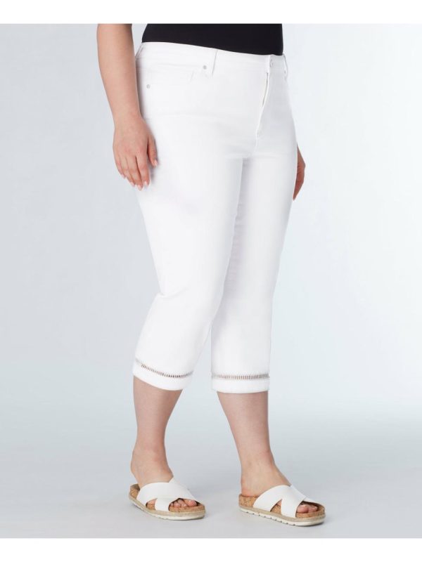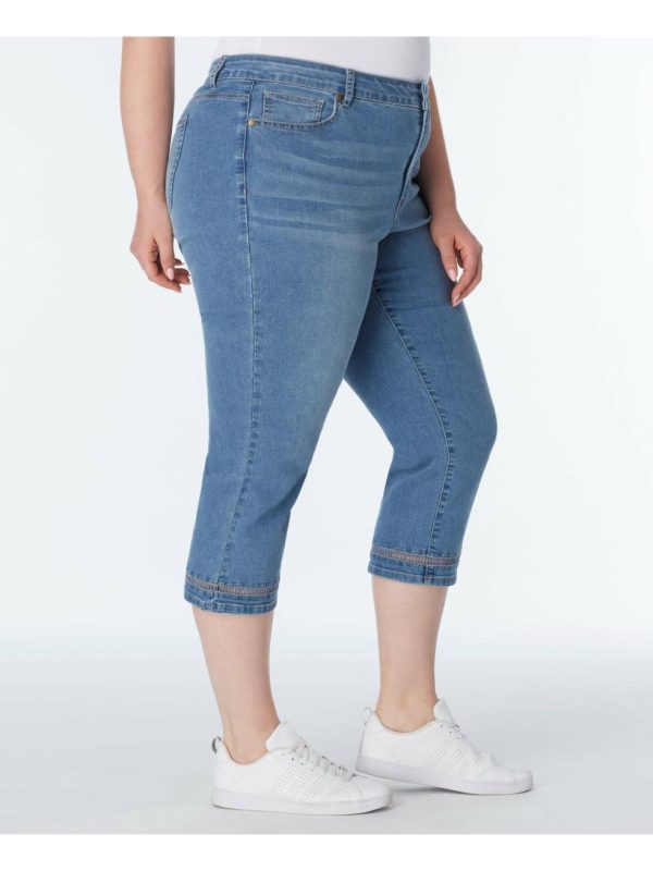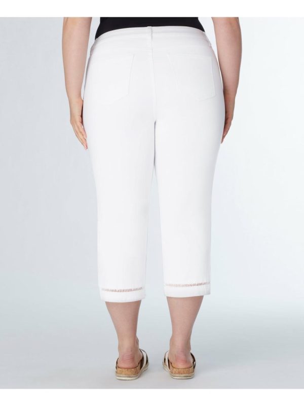Capri with crochet detail at the leg opening. Lycra gives great stretch for comfortable and flexible-fit jeans.