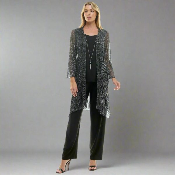 2Fer Elastic Waist Pant Set w/ Detachable Necklace in Solid Moonlight Hologram with Solid Moss Crepe, perfect easy to wear to shine for a special event.