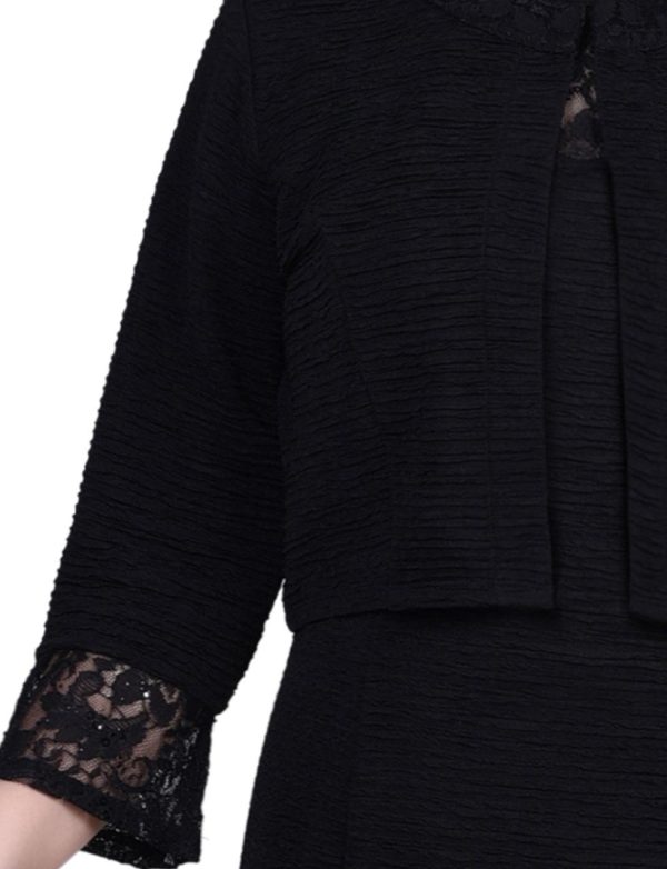 Women Dressbarn Dresses | Black Two Piece Novelty Knit And Lace Dress Set – Petite