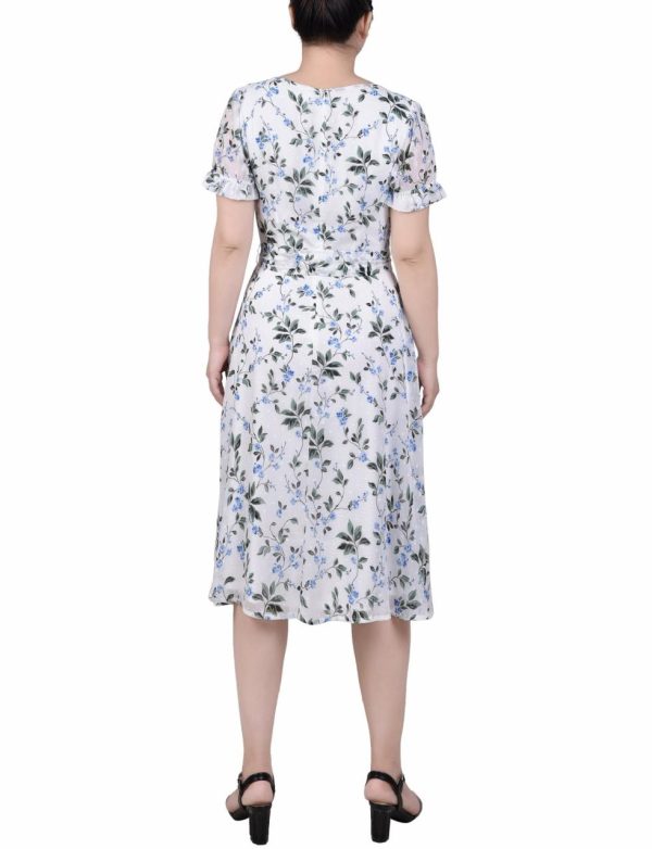 This sweet and simple swiss dot dress, with a tie waist and rouched sleeves, is the perfect special occasion dress.