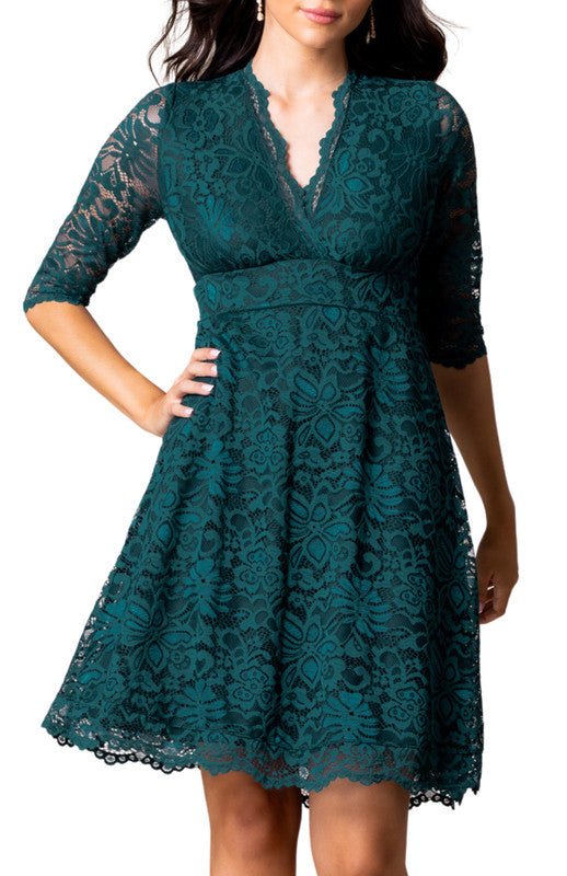 The Mademoiselle Lace Cocktail Dress is a special occasion A-line midi length dress with scalloped lace and fit and flare silhouette. Party perfect for day, evening, formal, semi-formal, wedding guest, bridesmaid, and mother of the bride / groom. Available in women’s regular and plus sizes.