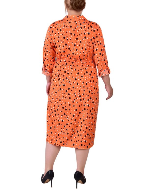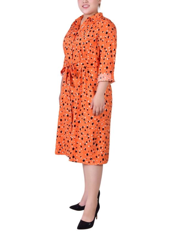 You’ll always be in style with this classic shirt-dress with its full button front and self belt.