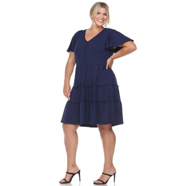 Our flouncy tiered design gives this midi dress a simple but elegant look. The easy, breezy style is what makes if a perfect casual wear on hot days. The loose fit will compliment and flatter all body types. It features a V-neckline, a faux button down front and flutter sleeves.
