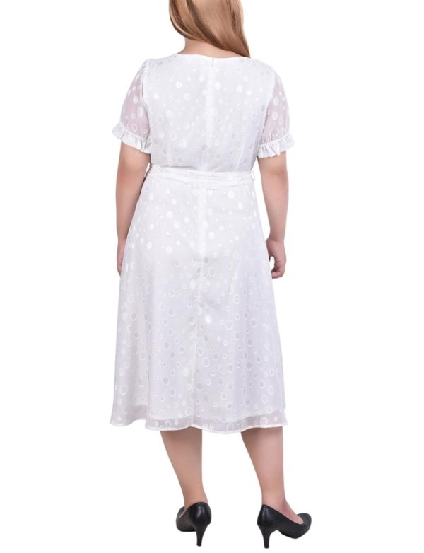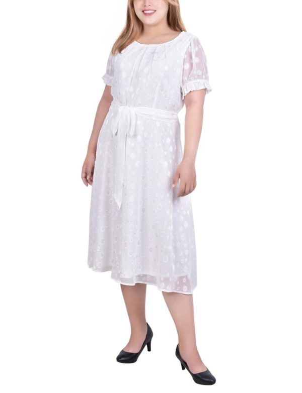 This sweet and simple swiss dot dress, with a tie waist and rouched sleeves, is the perfect special occasion dress.