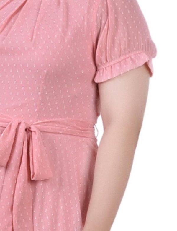 Women Dressbarn Midi Dresses | Mellow Rose Rectangle Short Sleeve Belted Swiss Dot Dress – Plus
