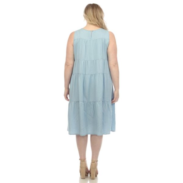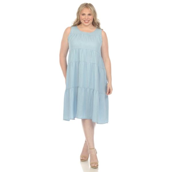 Women Dressbarn Midi Dresses | Sleeveless Tiered Chambray Midi Dress – Plus