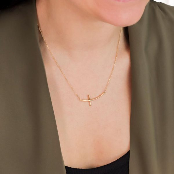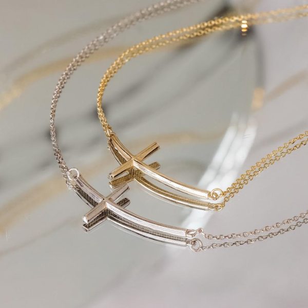 Stylishly modern touch of our bestselling classic sideways cross necklace made of 18K gold plated over sterling silver. Its a perfect cross necklace for the fashionably faithful.