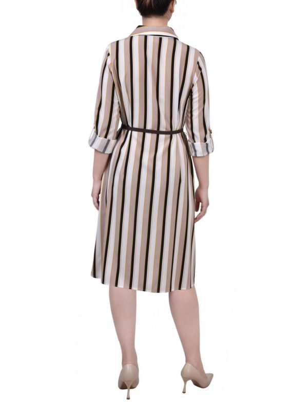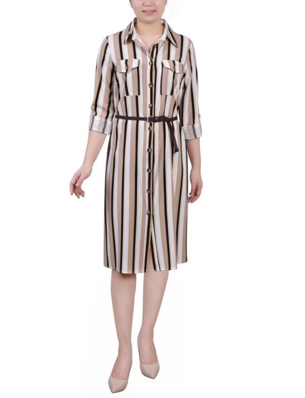 Women Dressbarn Petite Dresses | Green Diatribe 3/4 Roll Tab Sleeve Belted Shirtdress – Petite