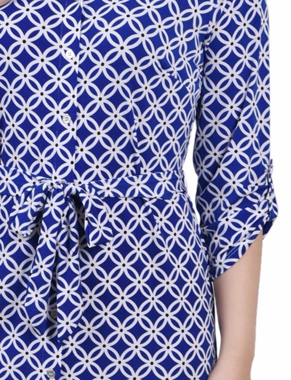 Women Dressbarn Petite Dresses | Black White Iconic 3/4 Roll Tab Sleeve Belted Shirtdress – Petite