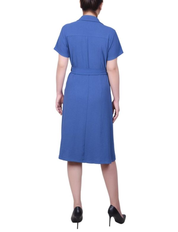 This NY Collection A-line shirtdress is crafted with a belt for a flattering finish. It features short sleeves and timeless style, making it a versatile addition to your wardrobe.