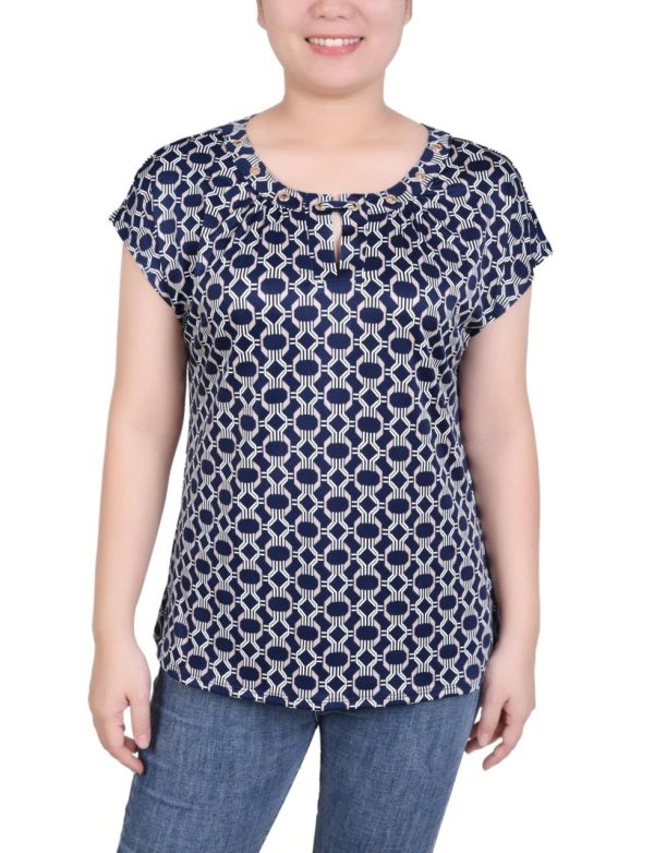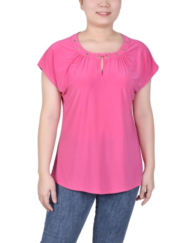 With a neckline grommet accents and cap sleeves, this NY Collection top is a great addition to any wardrobe.