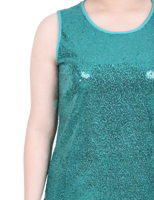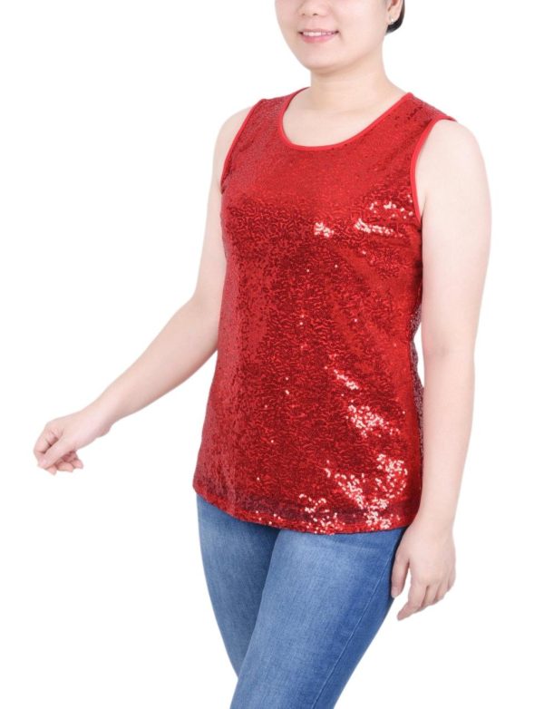Women Dressbarn Petite Tops | Sleeveless Sequined Tank Top With Combo Banding – Petite