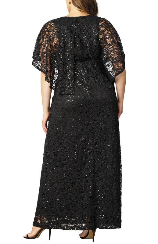 You’ll look absolutely regal in our plus size Celestial Cape Sleeve Gown. Designed with sequin lace, you’ll light up every room you enter.