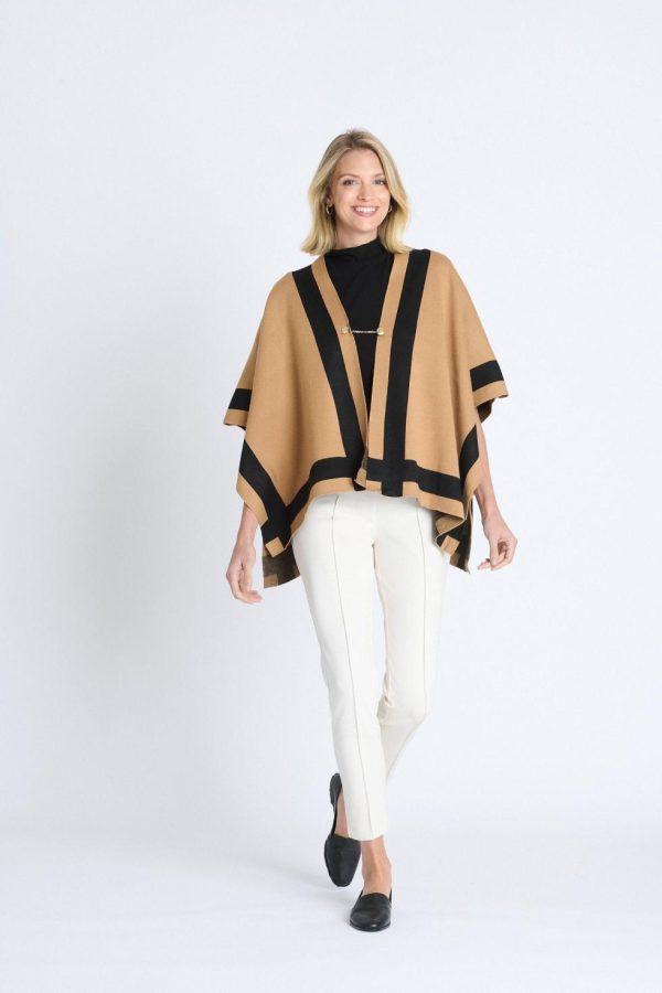 Elevate your style with our Color Block Poncho in Perfect Camel and Black. This cozy, draped design layers effortlessly over any outfit, adding instant sophistication with its chic color pairing.