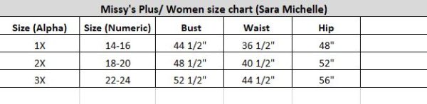 Size | 0X, 1X, 2X, 3X, 4X, 5X |