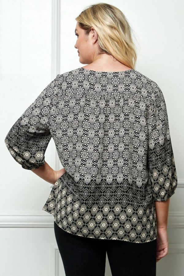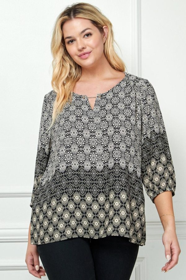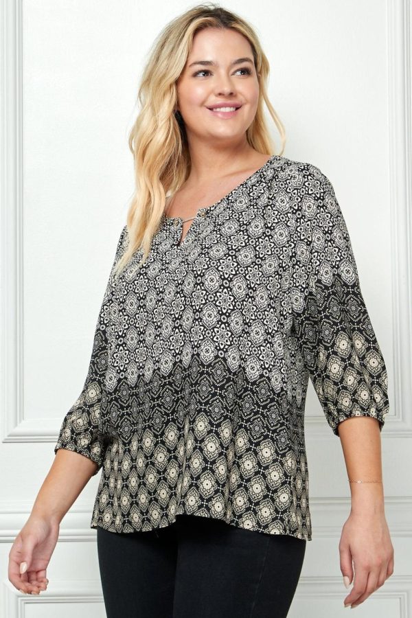 Women Dressbarn Tops | 3/4 Sleeve Border Print Top – Plus