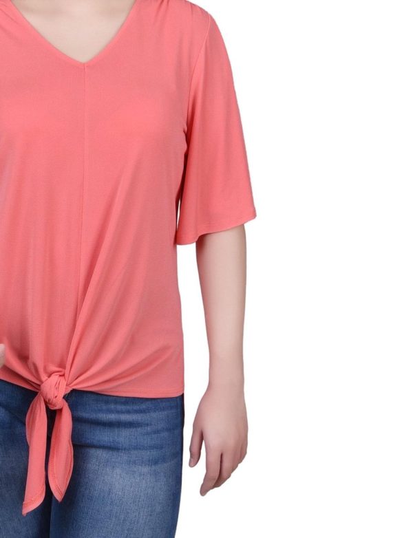 This will be your go-to blouse this season from NY Collection. The V-neckline and relaxed fit make it easy to wear while the tie waist gives it an updated style.