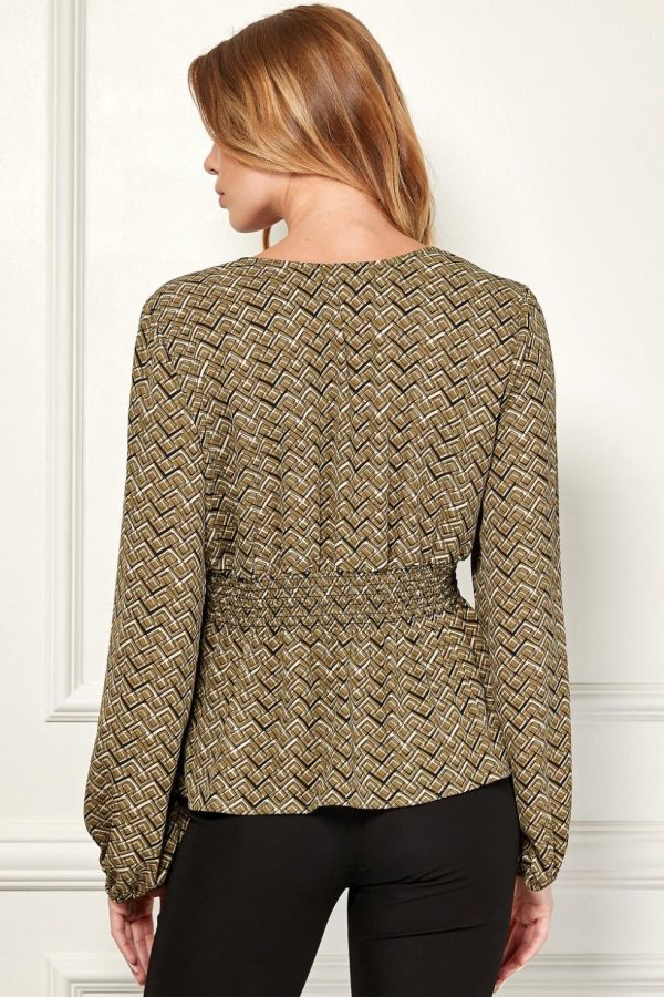 Women Dressbarn Tops | Long Sleeve V-Neck Smock Waist Blouse