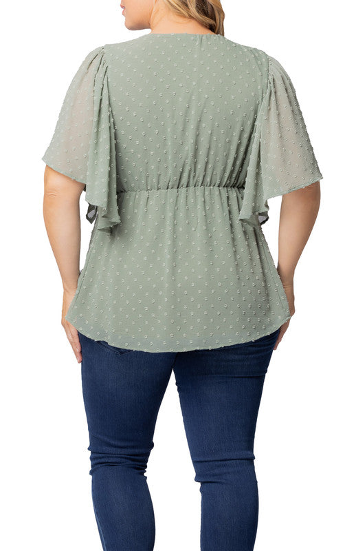 Our Seaside Serenade Top will take you from the office to the weekend with total ease. This stylish plus size blouse is designed with flutter sleeves and a flattering crossover bodice.