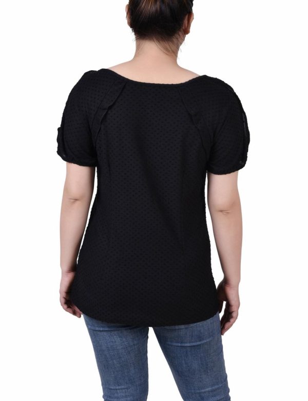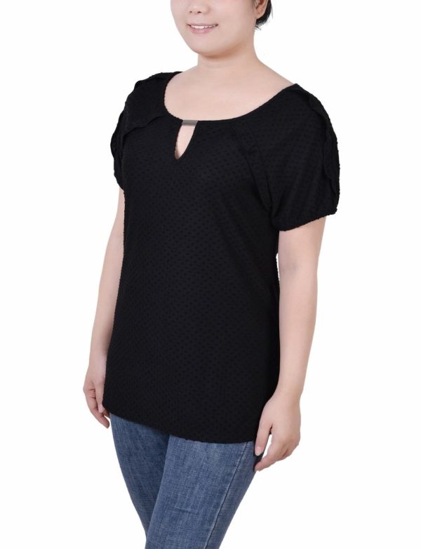 Ruffles are so “in” this season and this ruffle-detail swiss dot from NY Collection will have you wanting one in every color.