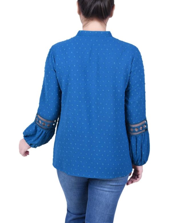 Elevate your everyday style with this beautifully crafted blouse featuring delicate crochet and lace accents from the NY Collection. The lightly textured fabric offers sophisticated versatility, making it perfect for professional office settings or casual social gatherings with friends.