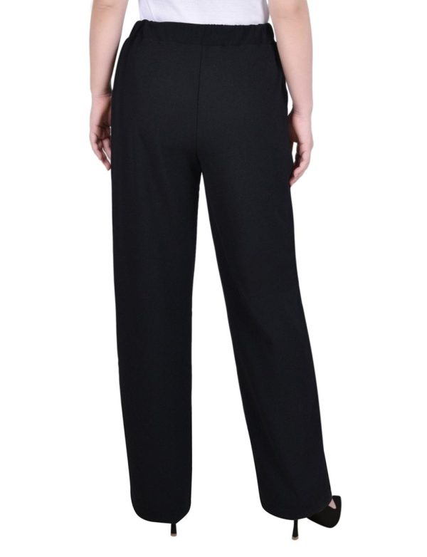 Discover your new season essential with these sophisticated scuba crepe pants from NY Collection. The premium stretch fabric offers exceptional comfort and ease of movement throughout your day. Features an elastic waistband with a stylish faux belted front for a polished look.