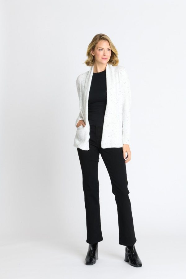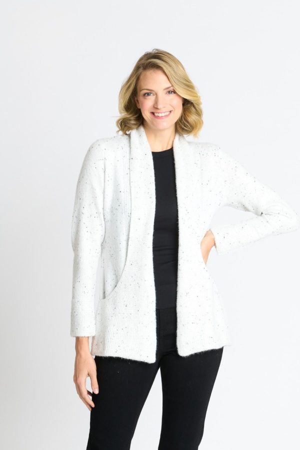 Our Flecked J-Pocket Cardigan Sweater features exceptionally soft, cozy yarn with sophisticated black donegal speckling and practical j-pockets. This versatile lightweight cardigan offers ideal layering capability while providing just the right amount of warmth to complete any outfit.