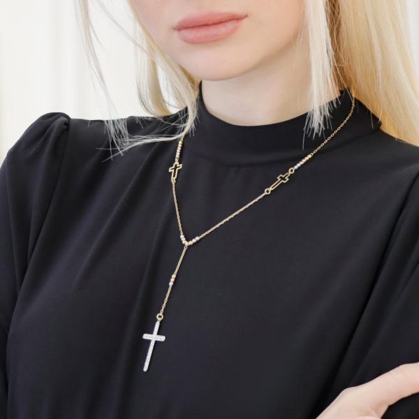 This exquisite Miriam Miracle triple cross necklace features premium European crystals, Gloria’s signature beads, and beautifully crafted cut-out crosses. A stunning expression of faith that complements any style with grace and elegance.