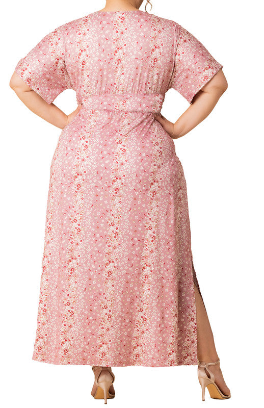 The Vienna Maxi Dress features a beautifully curve-enhancing silhouette with an empire waist design, elegant V-neckline, gracefully flowing A-line skirt, and stylish side slits. This stretch jersey dress offers exceptional versatility, perfect for both casual daytime wear and dressed-up occasions like semi-formal events or wedding guest attire. Available in regular and plus sizes.