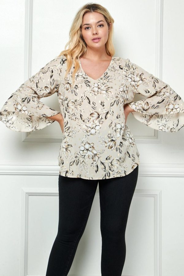 Elevate your style with this sophisticated floral blouse featuring eye-catching bell sleeves and a universally flattering V-neckline. The graceful flowy silhouette and delicate botanical print create versatile appeal for both everyday wear and special occasions. A must-have wardrobe essential that delivers effortless elegance!